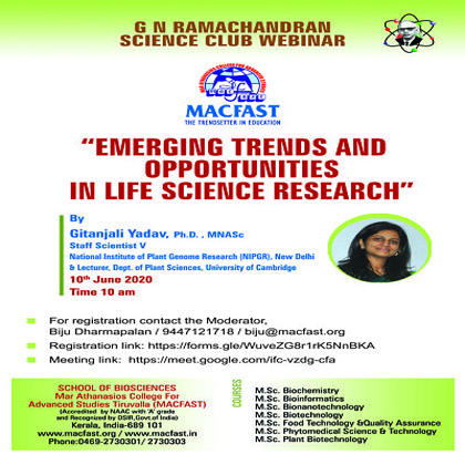 M.Sc in Biotechnology, Plant Biotechnology, Bioinformatics, Biochemistry, Food Technology & Quality Assurance, Phytomedical Science & Technology.